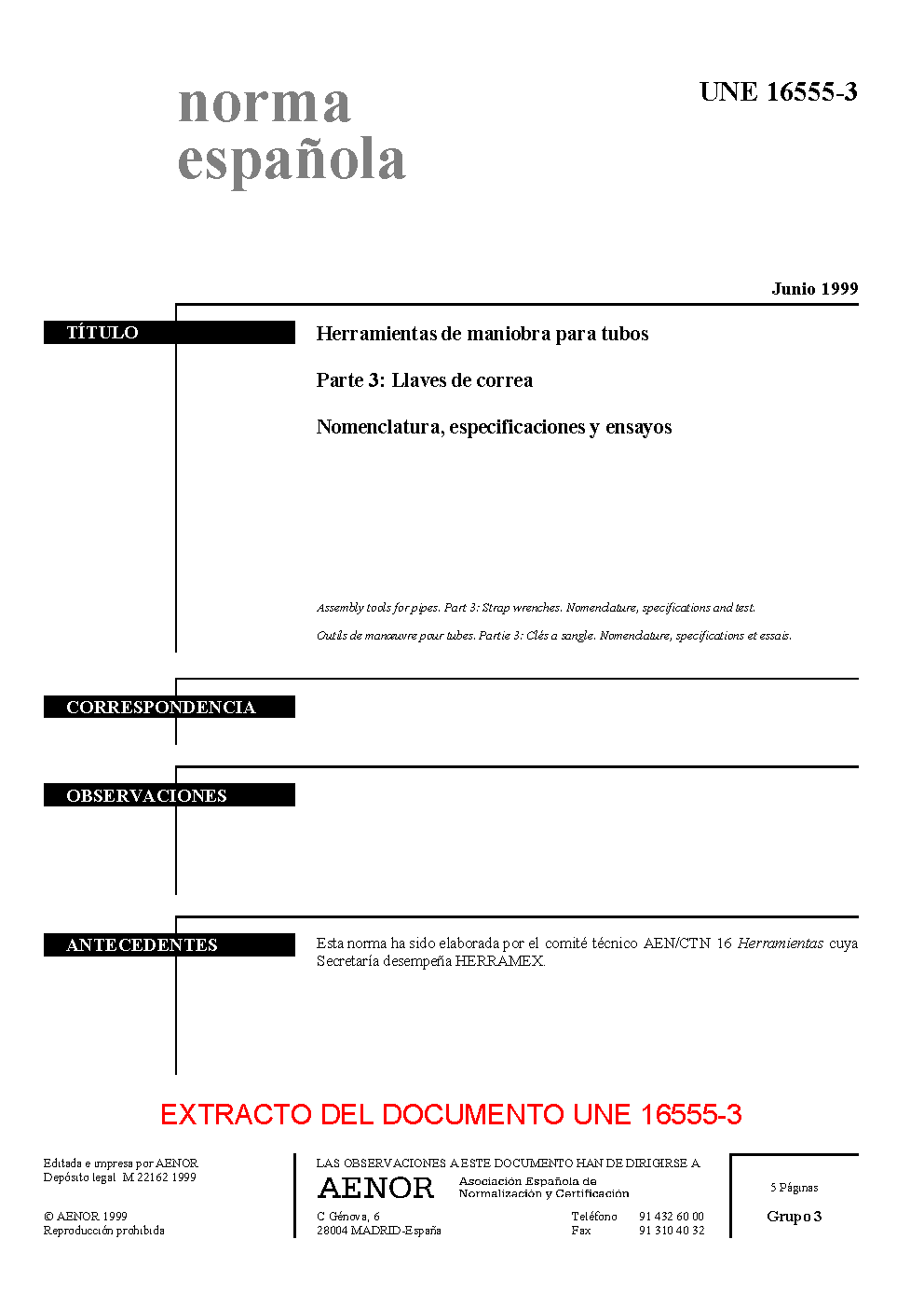 | Publisher | Asociacion Espanola de Normalizacion y Certificacion (AENOR) |