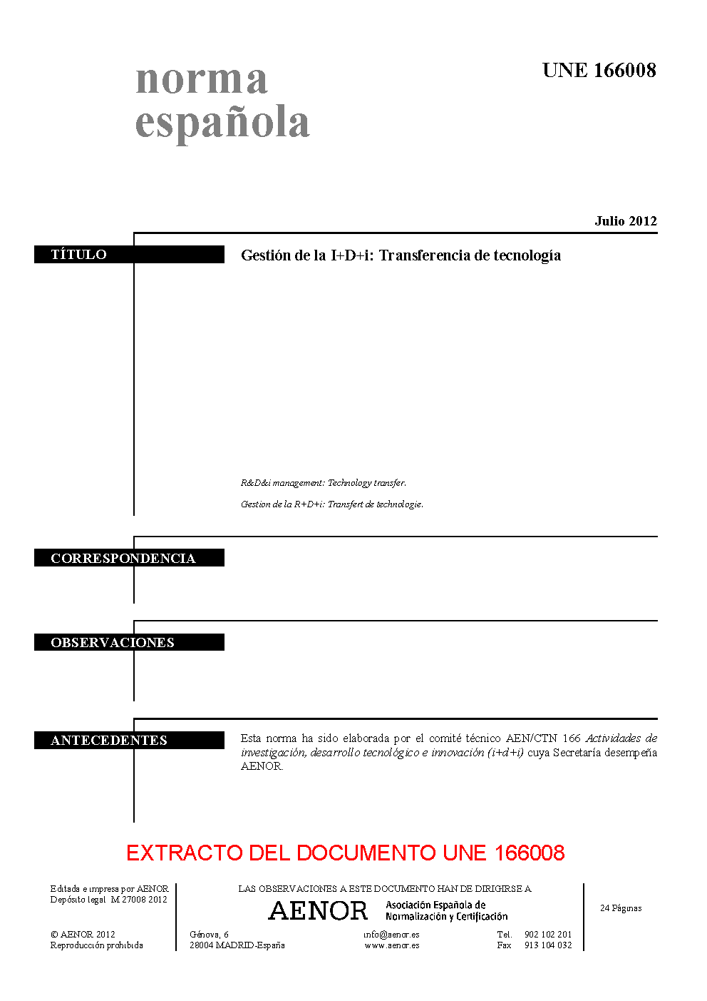 | Publisher | Asociacion Espanola de Normalizacion y Certificacion (AENOR) |