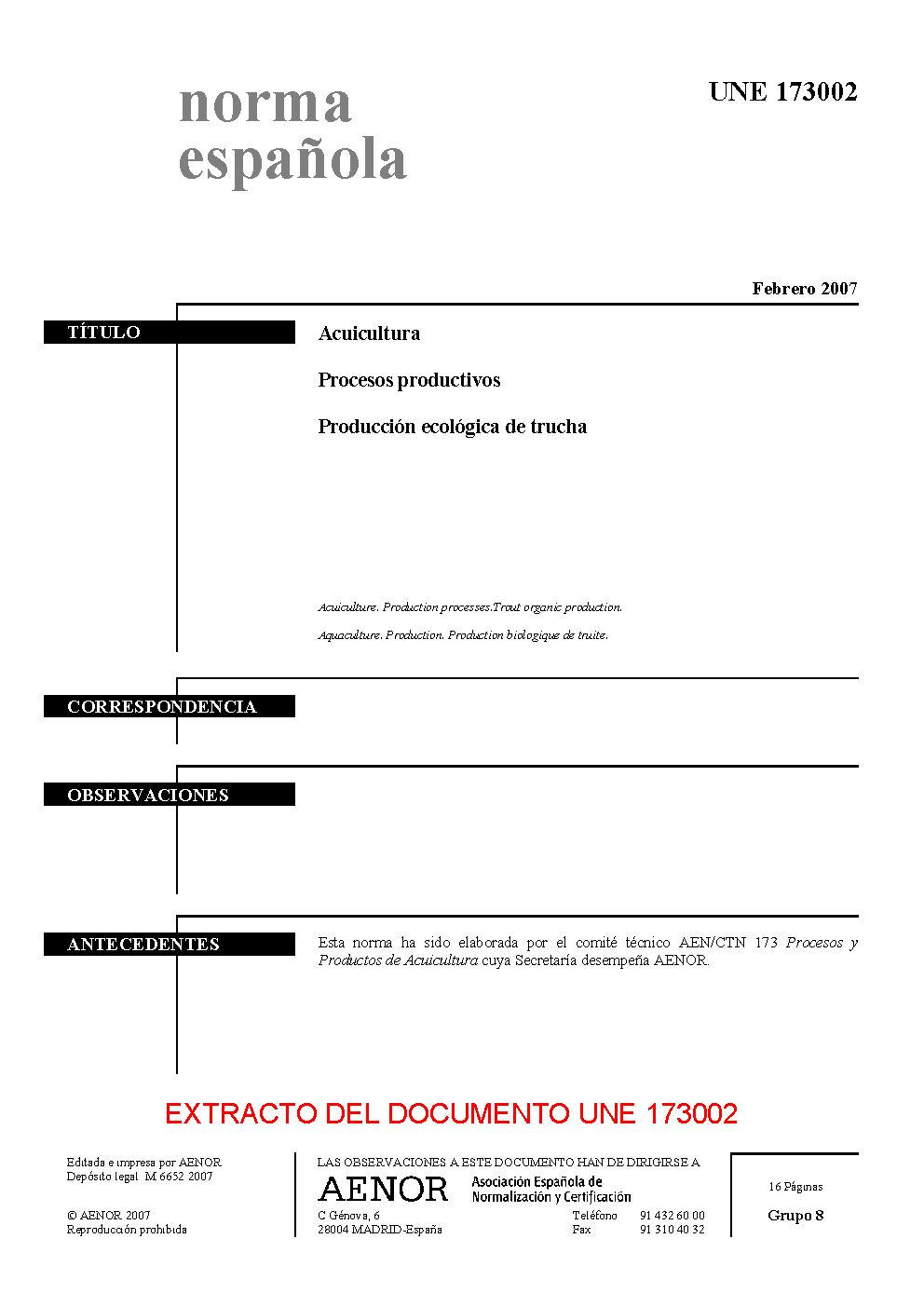 | Publisher | Asociacion Espanola de Normalizacion y Certificacion (AENOR) |