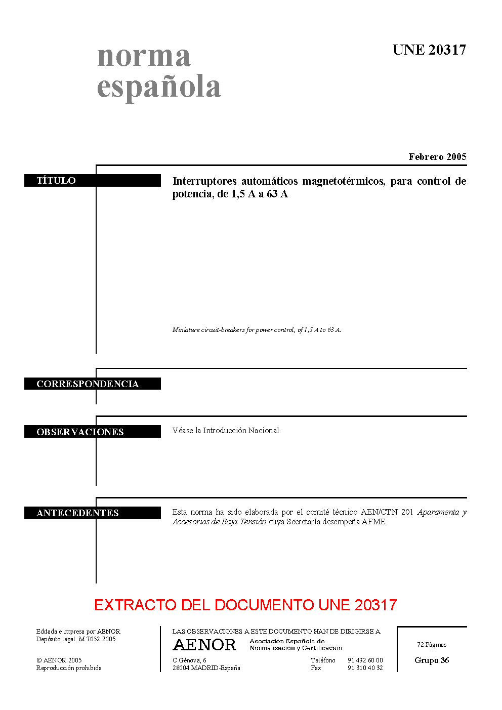 UNE 20317:2005