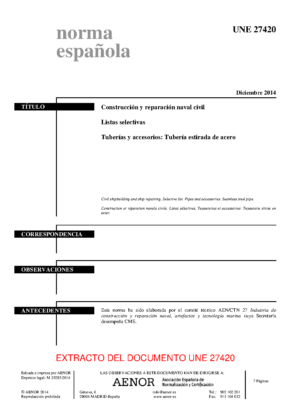 | Publisher | Asociacion Espanola de Normalizacion y Certificacion (AENOR) |