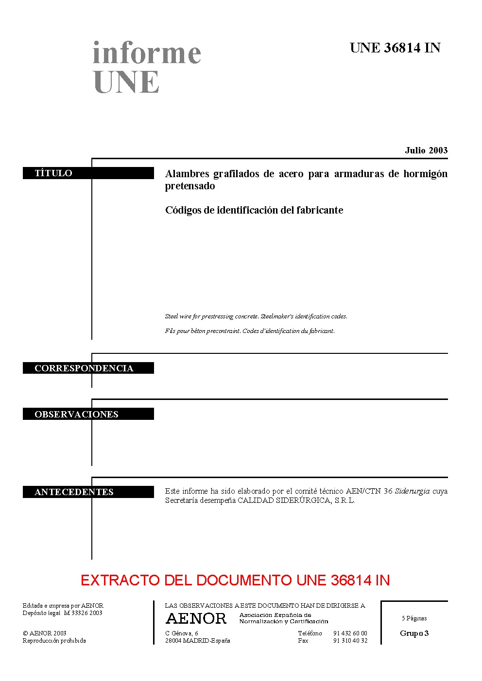 | Publisher | Asociacion Espanola de Normalizacion y Certificacion (AENOR) |