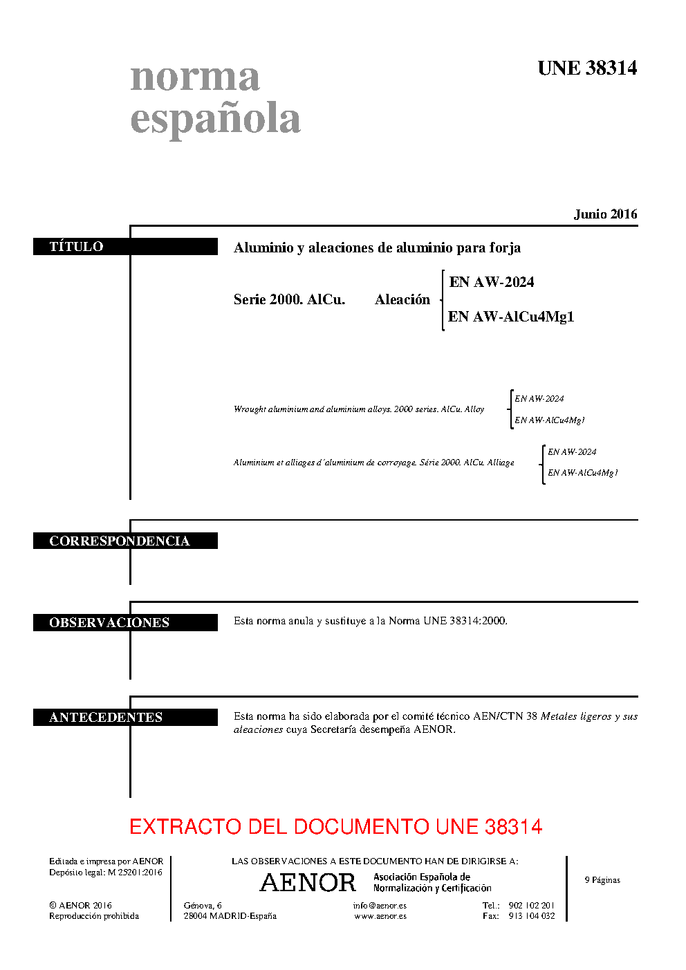 Wrought aluminium and aluminium alloys. 2000 series. AlCu. Alloy EN AW-2024, EN AW-AlCu4Mg1.