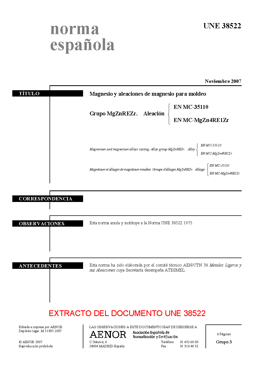 | Publisher | Asociacion Espanola de Normalizacion y Certificacion (AENOR) |