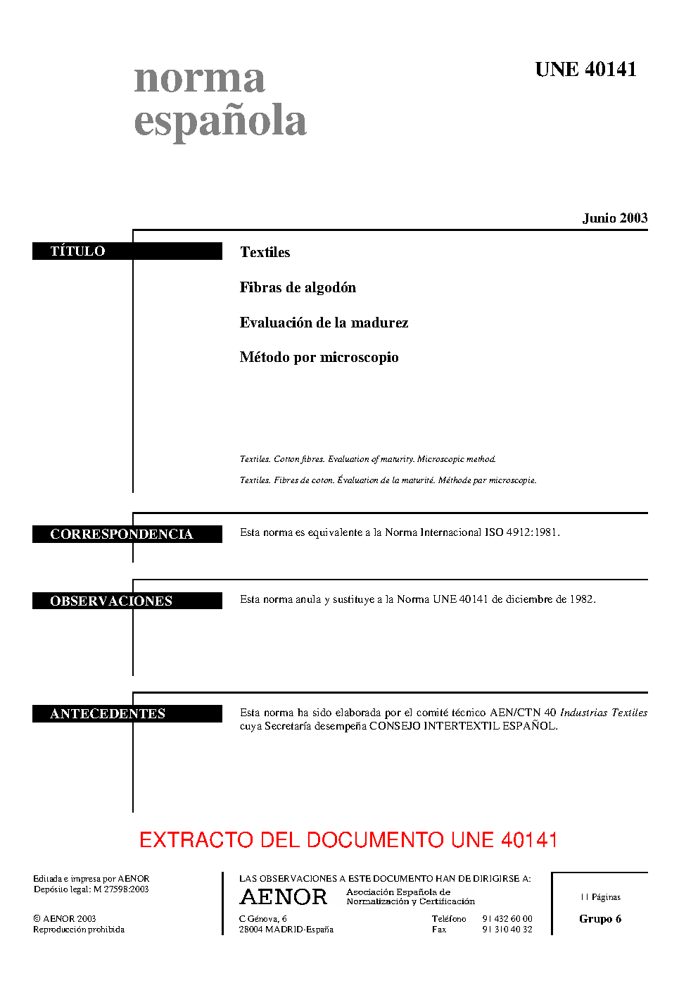 UNE 40141:2003