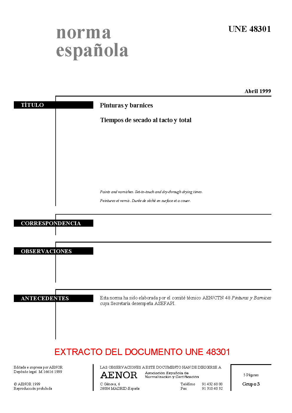 UNE 48301:1999 (R2014)