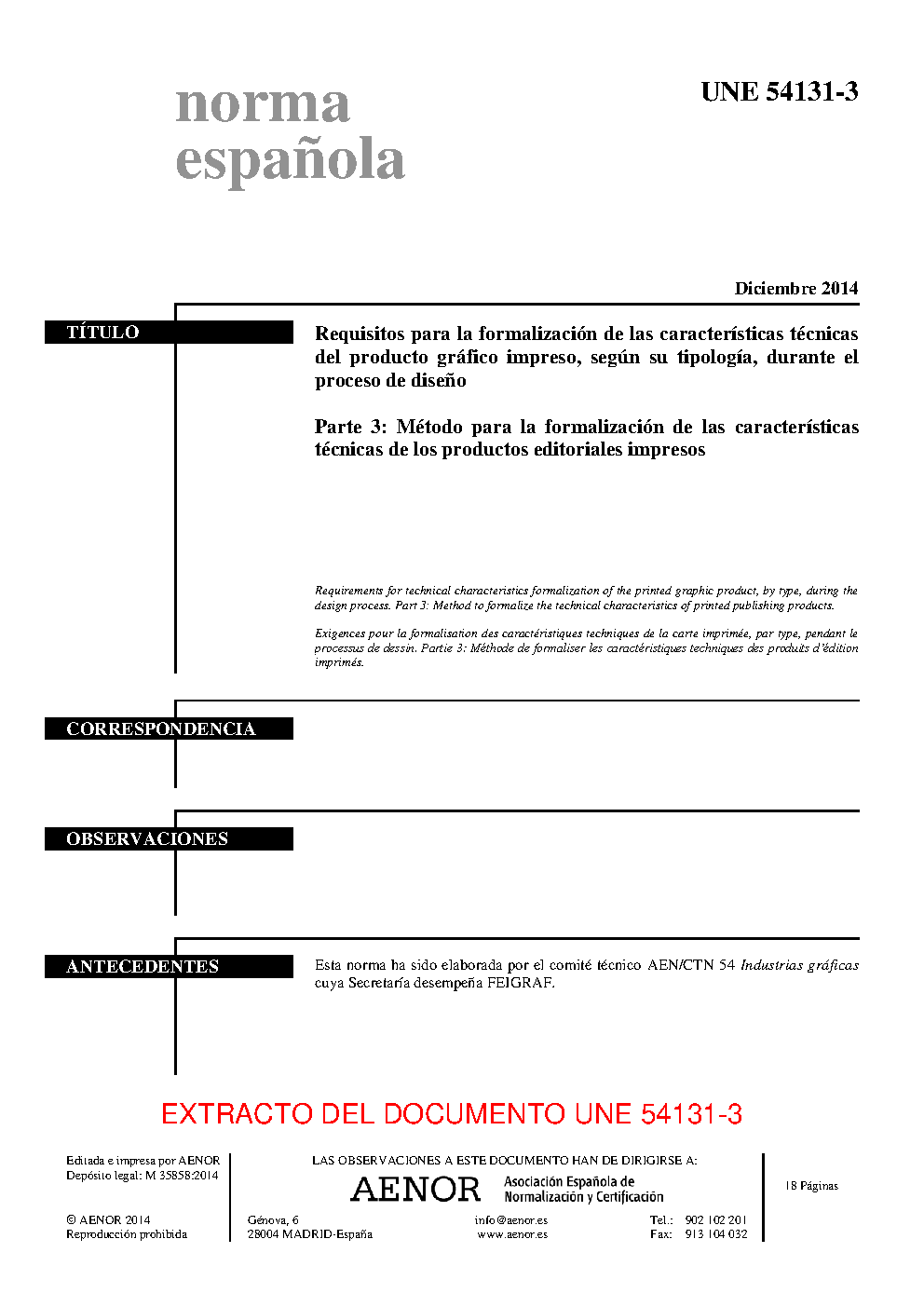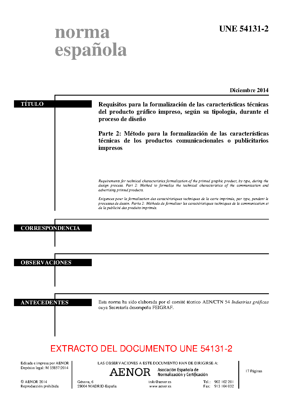 | Publisher | Asociacion Espanola de Normalizacion y Certificacion (AENOR) |