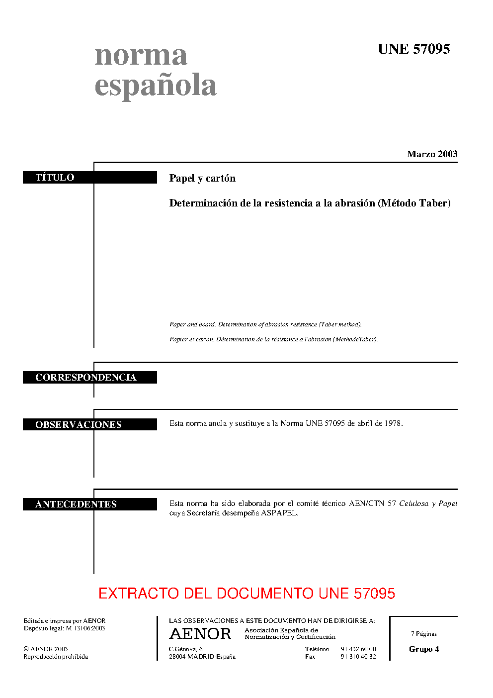 UNE 57095:2003