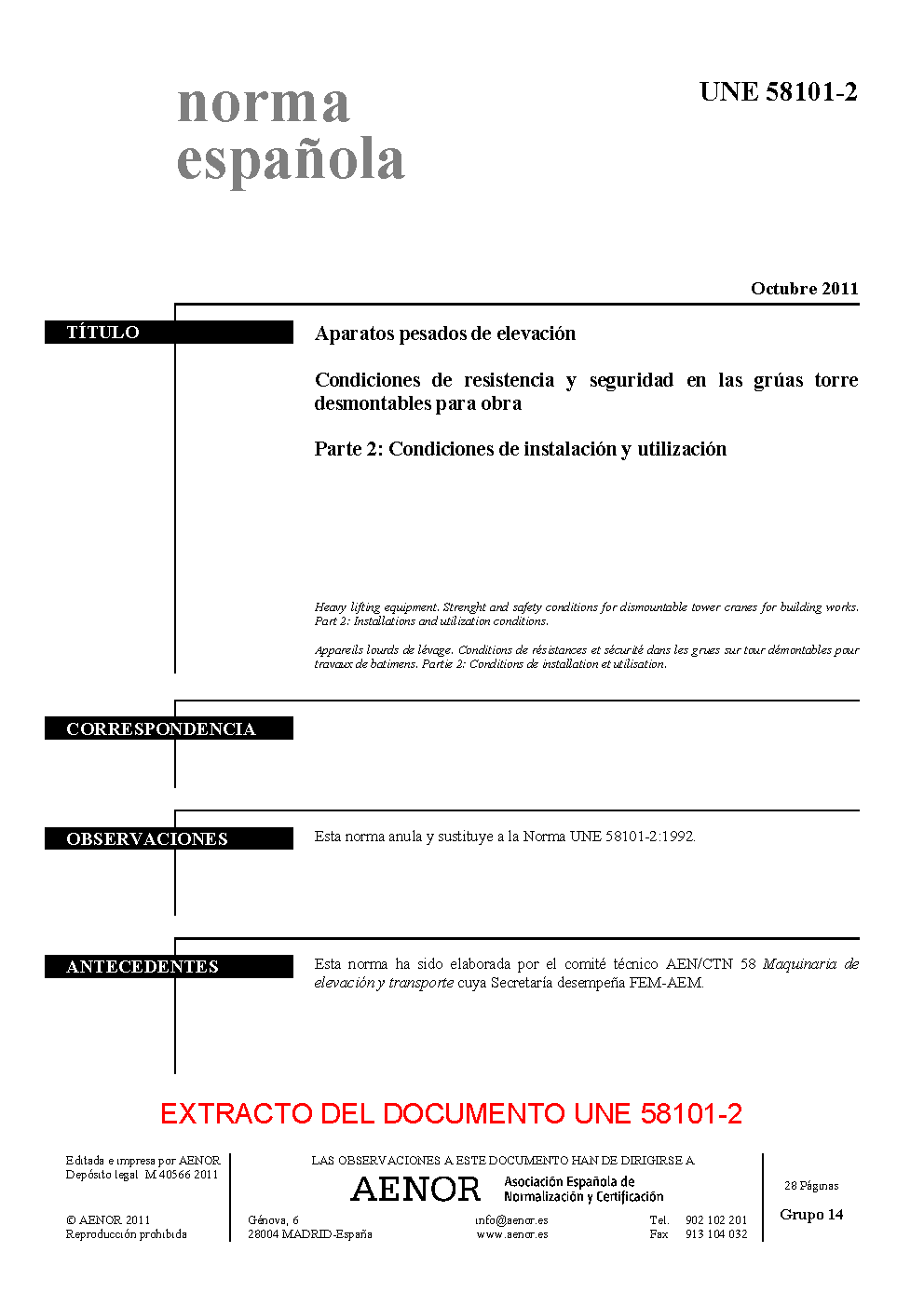 | Publisher | Asociacion Espanola de Normalizacion y Certificacion (AENOR) |