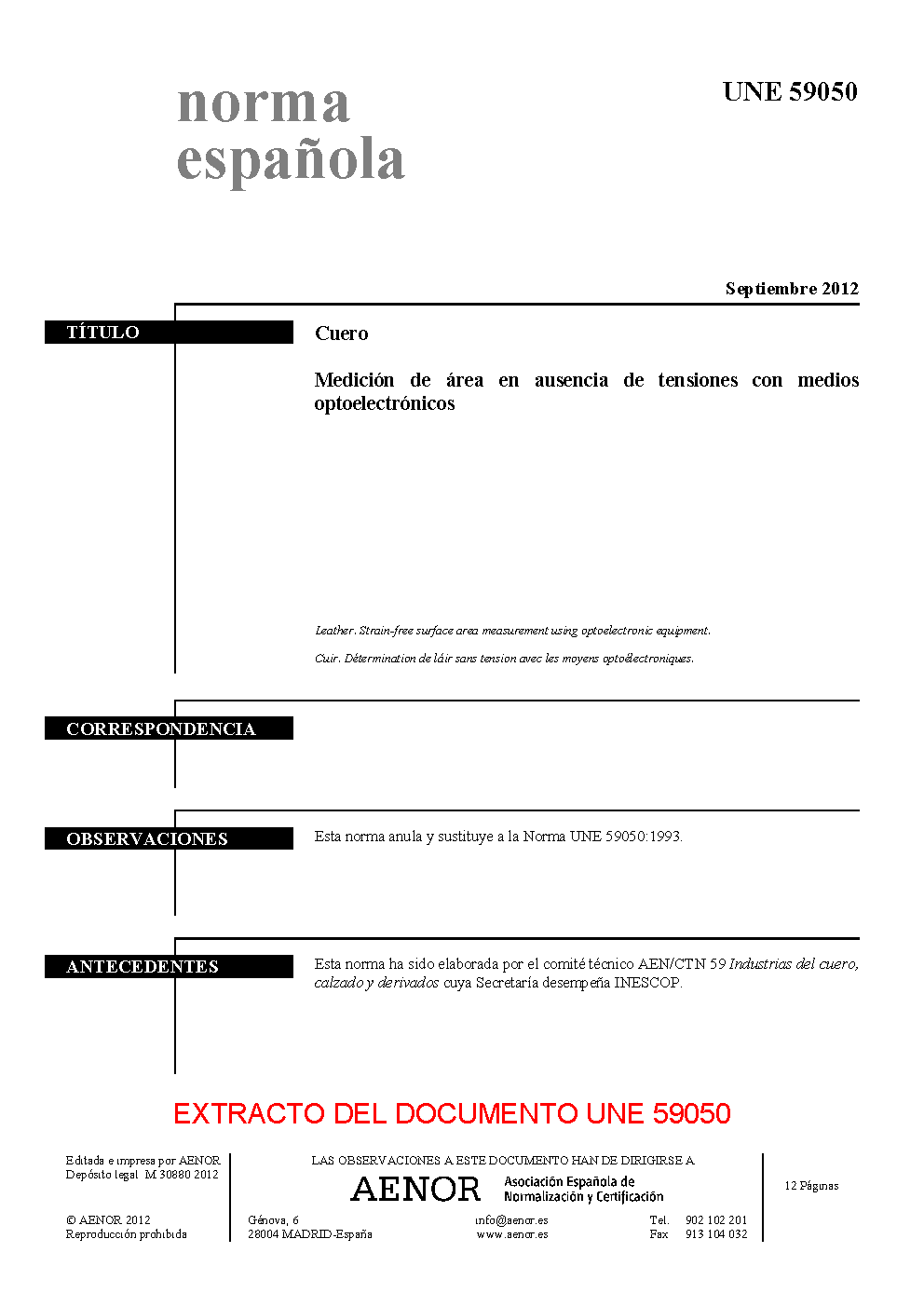| Publisher | Asociacion Espanola de Normalizacion y Certificacion (AENOR) |