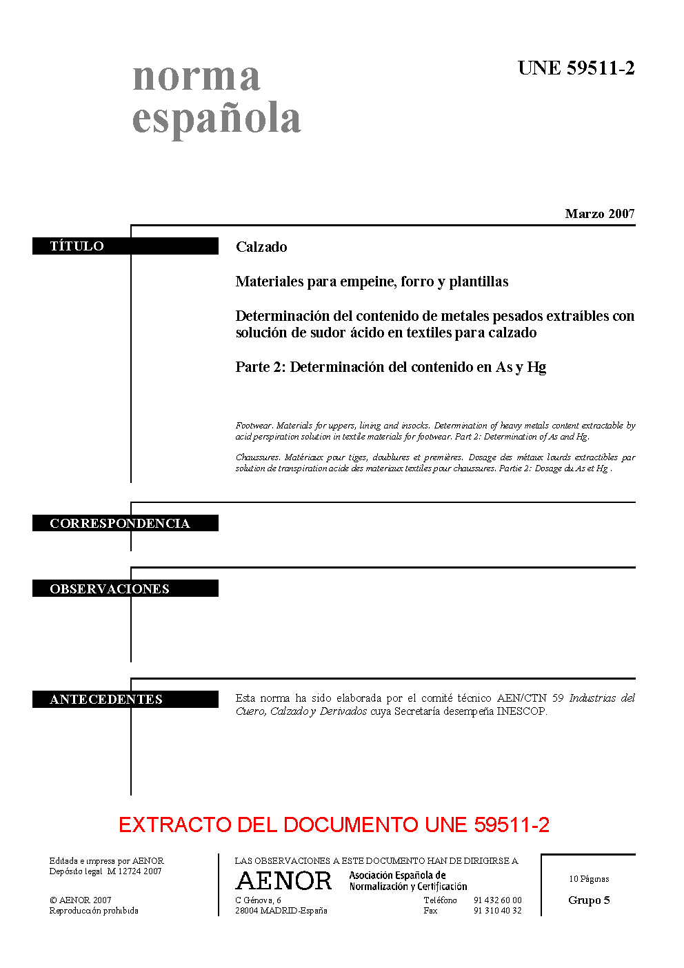 | Publisher | Asociacion Espanola de Normalizacion y Certificacion (AENOR) |