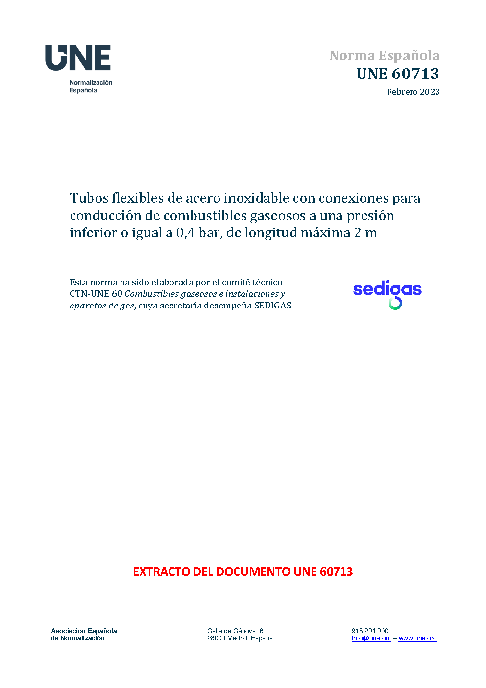 STAINLESS STEEL FLEXIBLE TUBE WITH CONNECTIONS FOR CONDUCTION GASEOUS FUELS: MEDIUM PRESSURE A(0,4 BAR) WITH MAXIMAL LONGITUDE 2 M