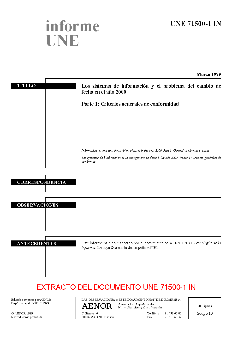 UNE 71500-1:1999 IN