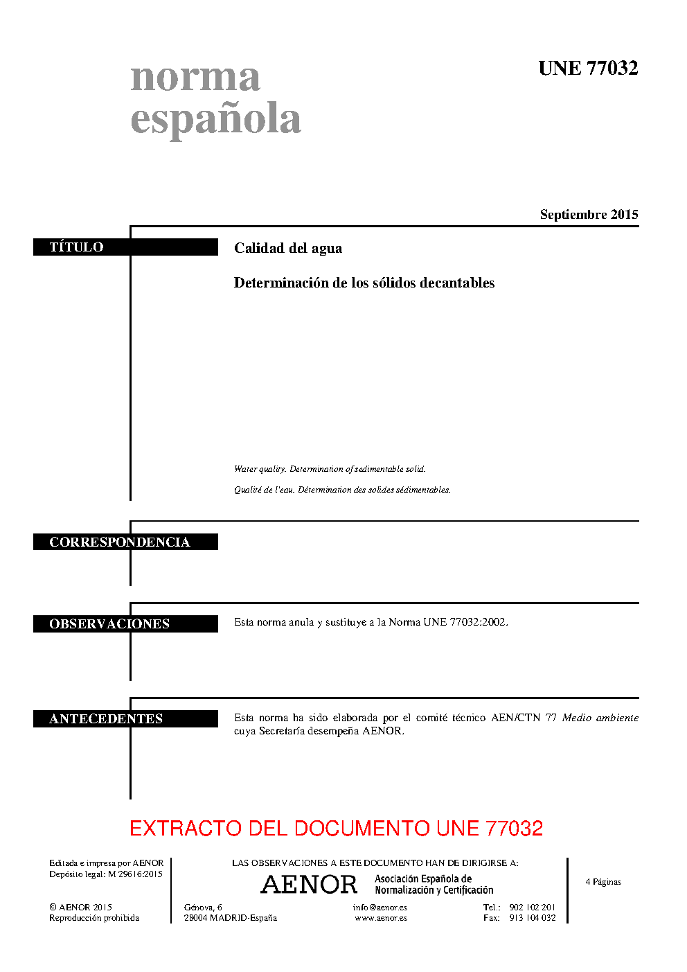 | Publisher | Asociacion Espanola de Normalizacion y Certificacion (AENOR) |