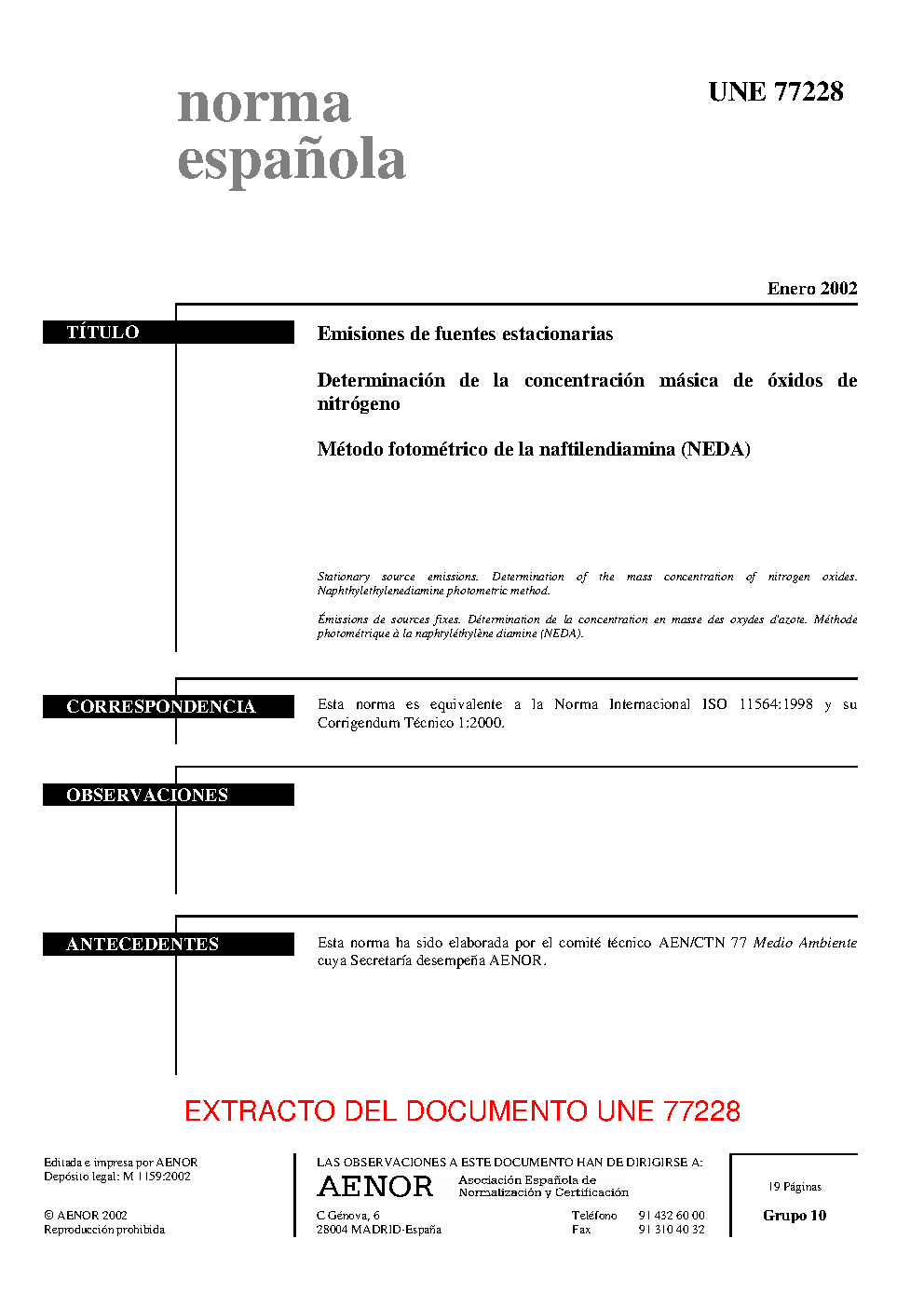 | Publisher | Asociacion Espanola de Normalizacion y Certificacion (AENOR) |