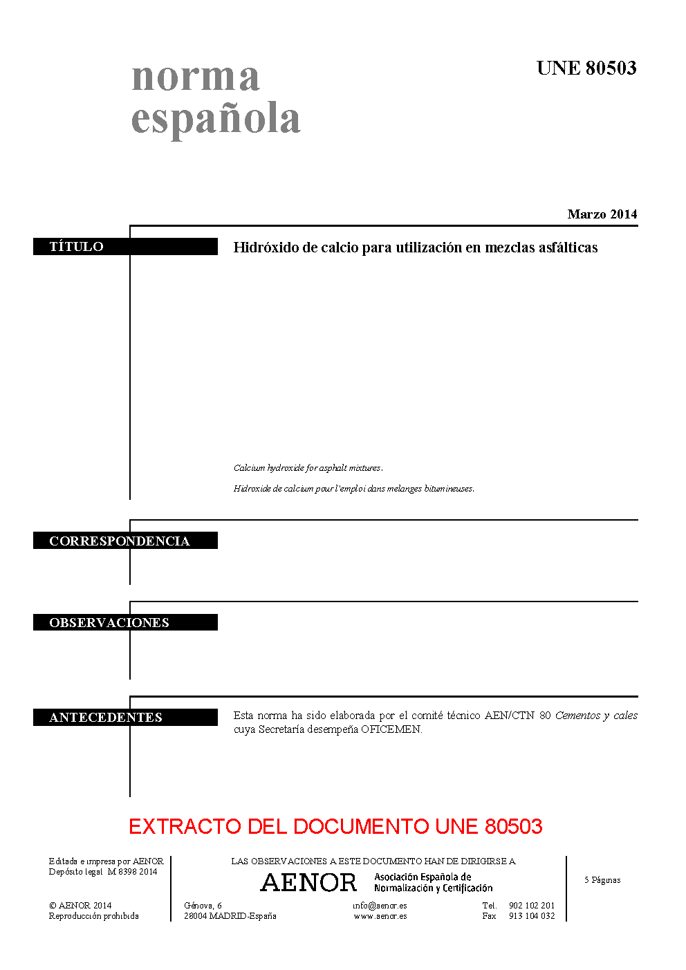 | Publisher | Asociacion Espanola de Normalizacion y Certificacion (AENOR) |