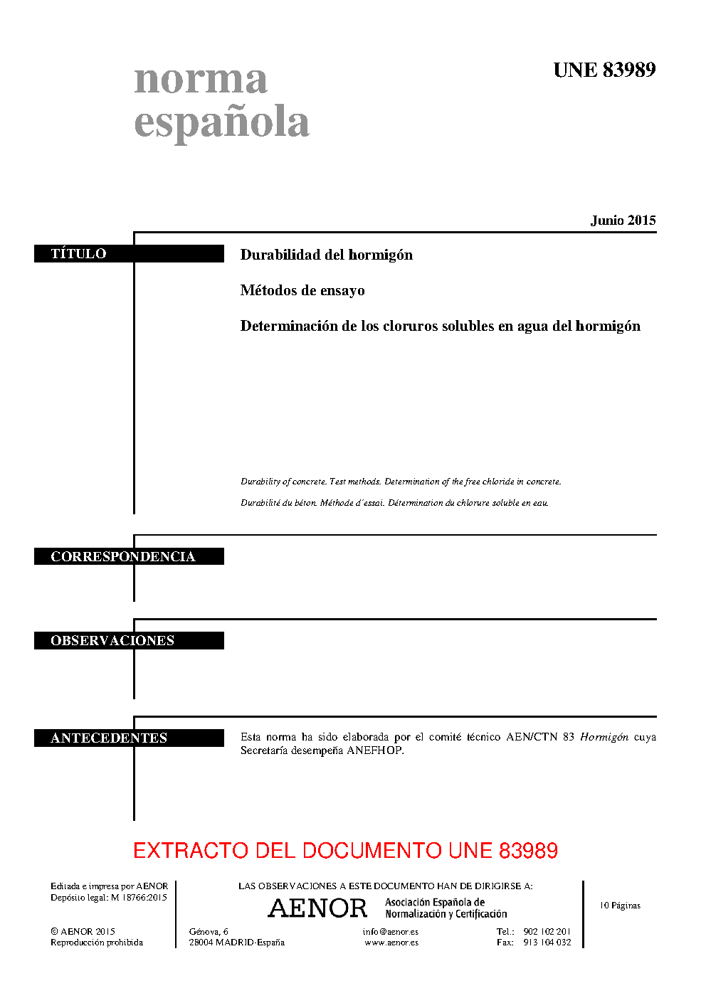 | Publisher | Asociacion Espanola de Normalizacion y Certificacion (AENOR) |