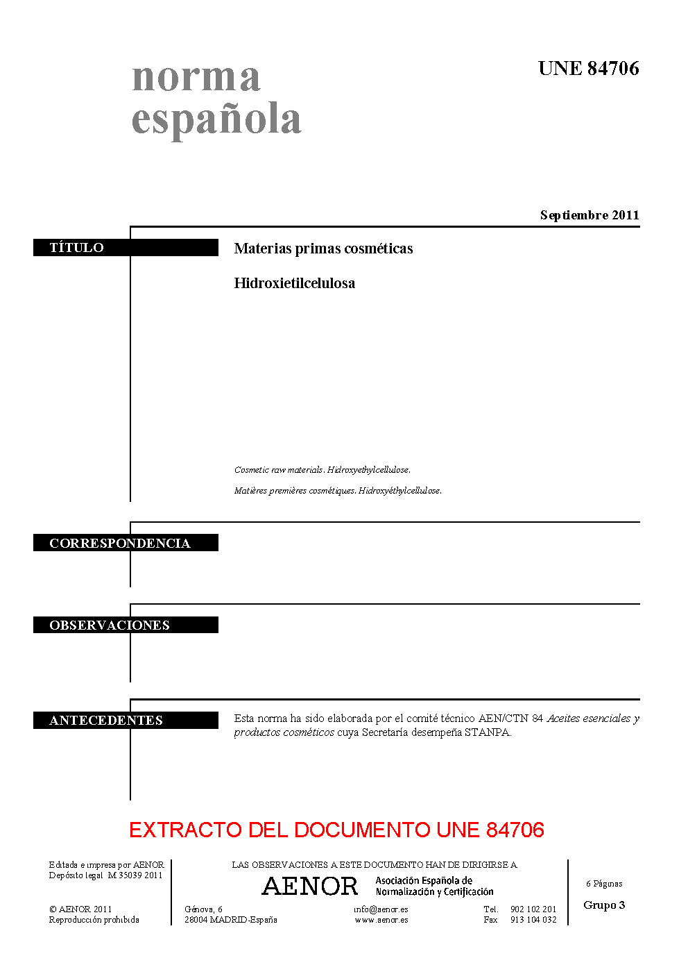 | Publisher | Asociacion Espanola de Normalizacion y Certificacion (AENOR) |