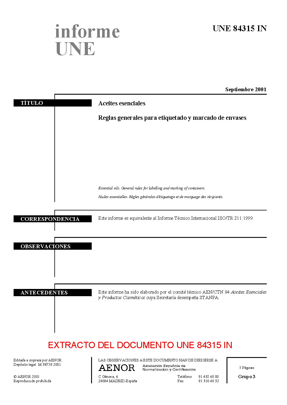 UNE 84315:2001 IN (R2016)