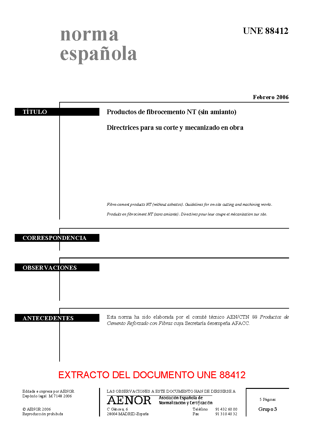 Fibre-cement products NT (without asbestos). Guidelines for on-site cutting and machining works.