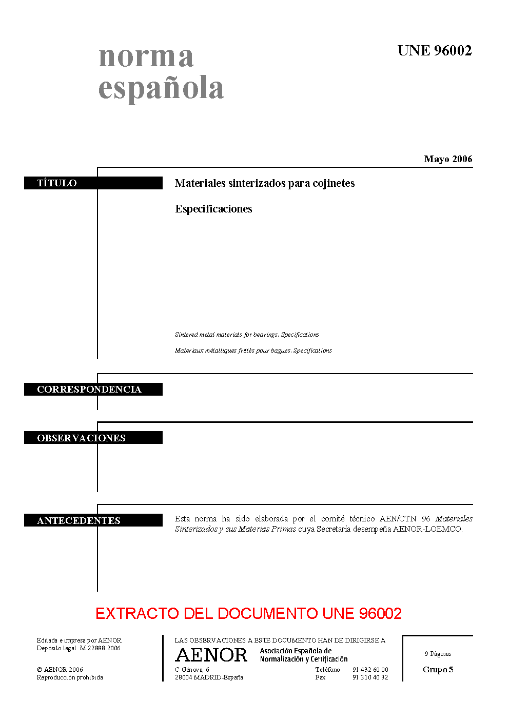 | Publisher | Asociacion Espanola de Normalizacion y Certificacion (AENOR) |