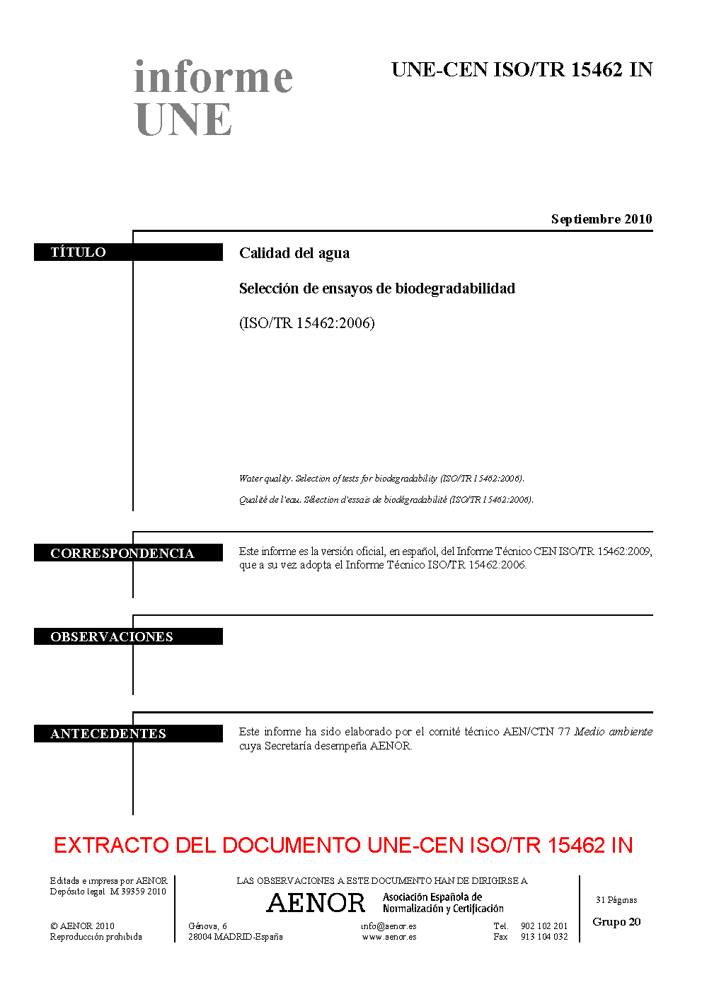 | Publisher | Asociacion Espanola de Normalizacion y Certificacion (AENOR) |