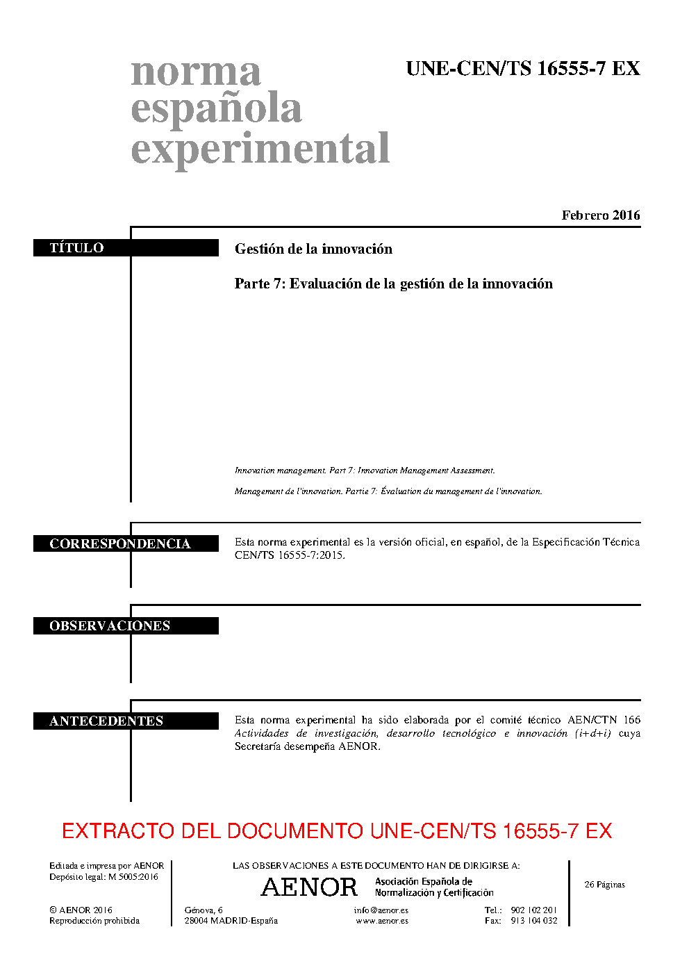 | Publisher | Asociacion Espanola de Normalizacion y Certificacion (AENOR) |