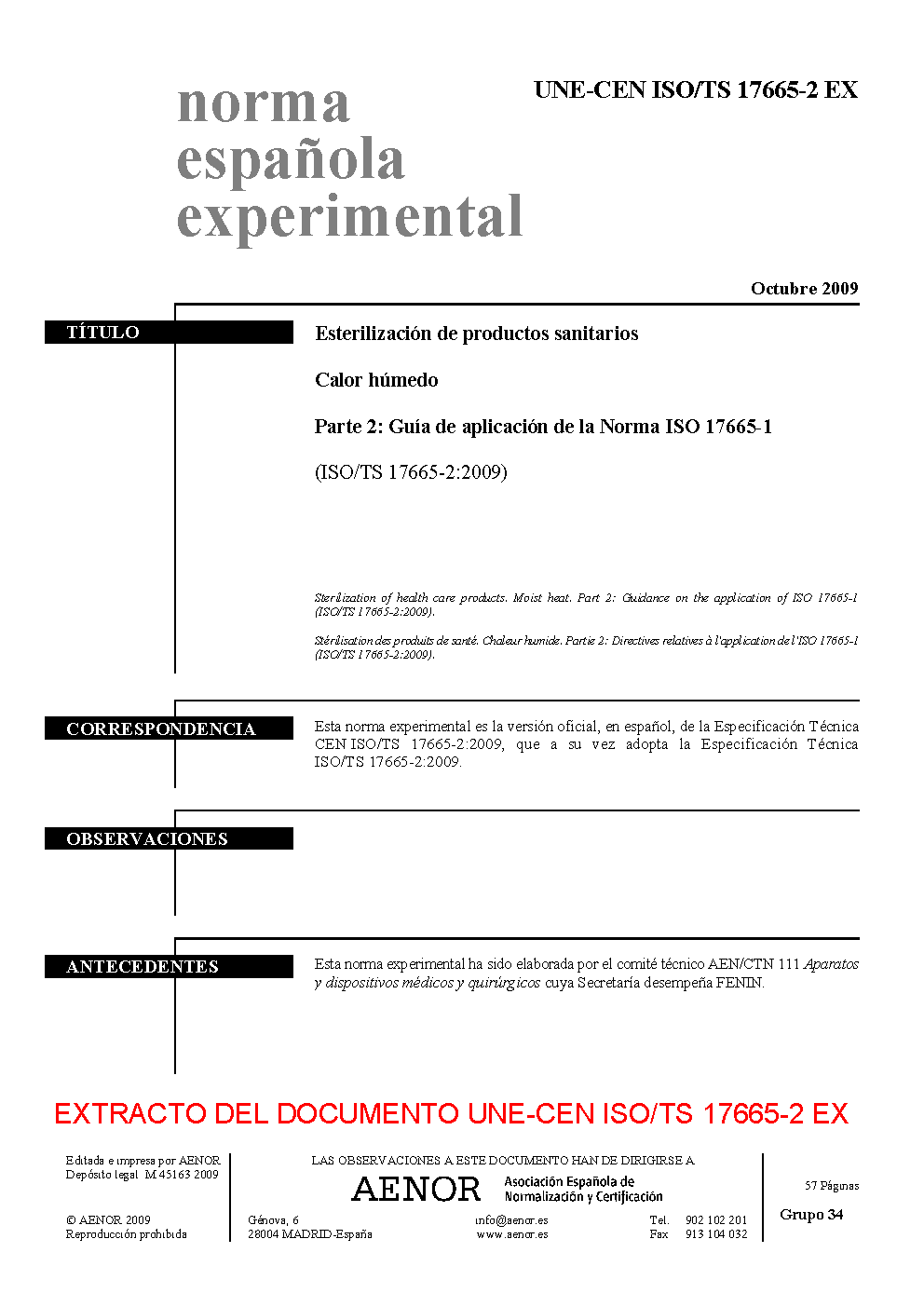 UNE-CEN ISO/TS 17665-2:2009 EX