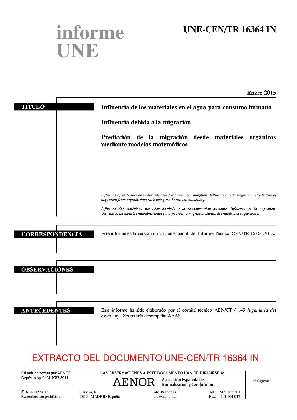 | Publisher | Asociacion Espanola de Normalizacion y Certificacion (AENOR) |