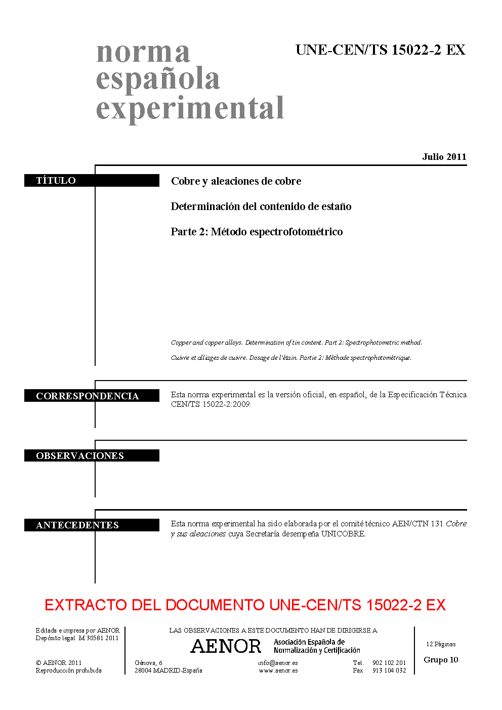 | Publisher | Asociacion Espanola de Normalizacion y Certificacion (AENOR) |