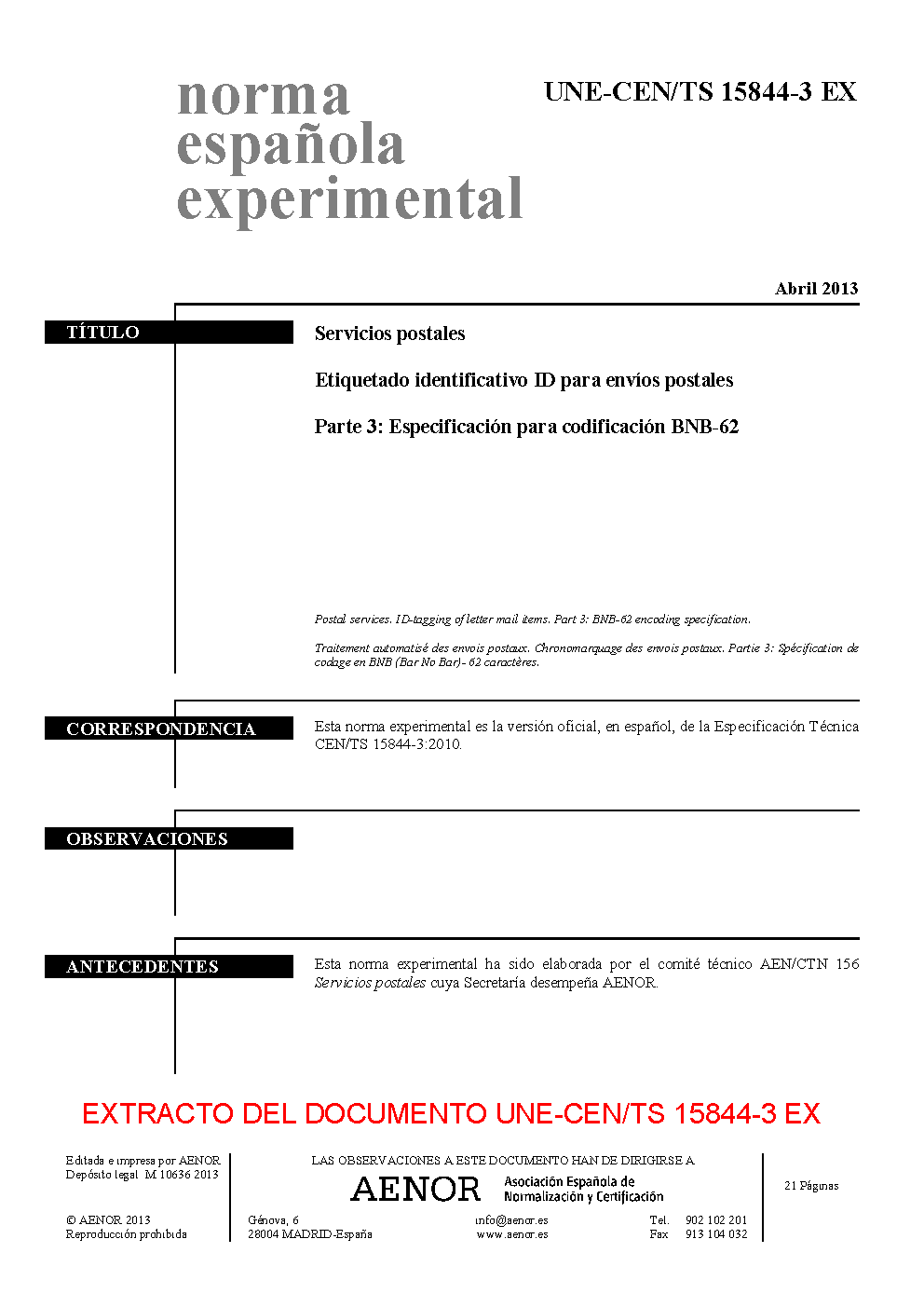 | Publisher | Asociacion Espanola de Normalizacion y Certificacion (AENOR) |