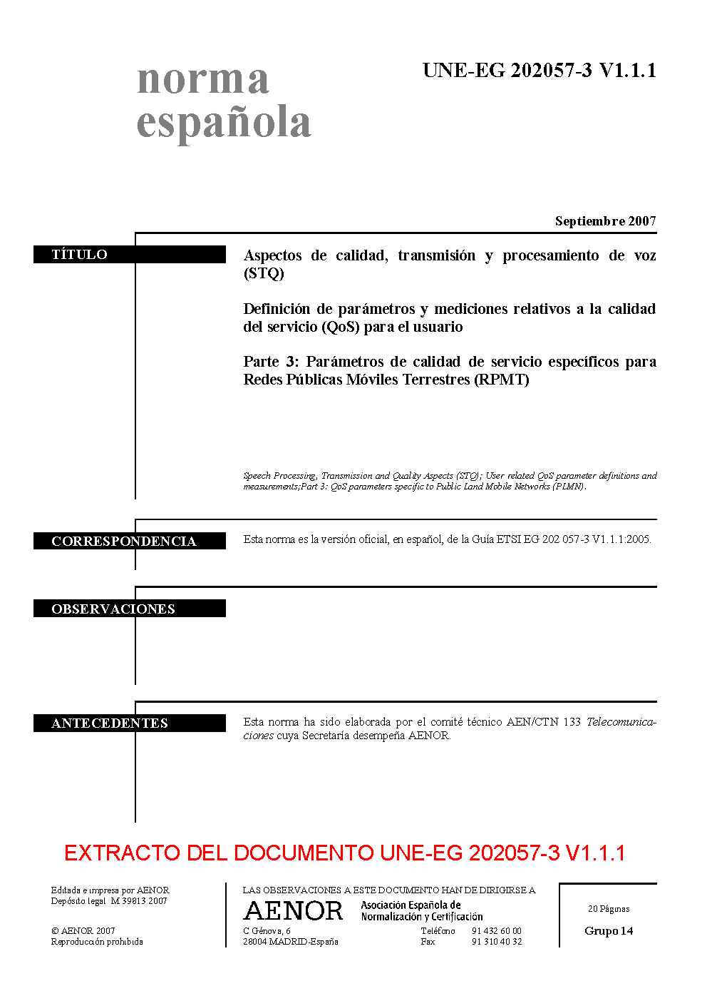 | Publisher | Asociacion Espanola de Normalizacion y Certificacion (AENOR) |