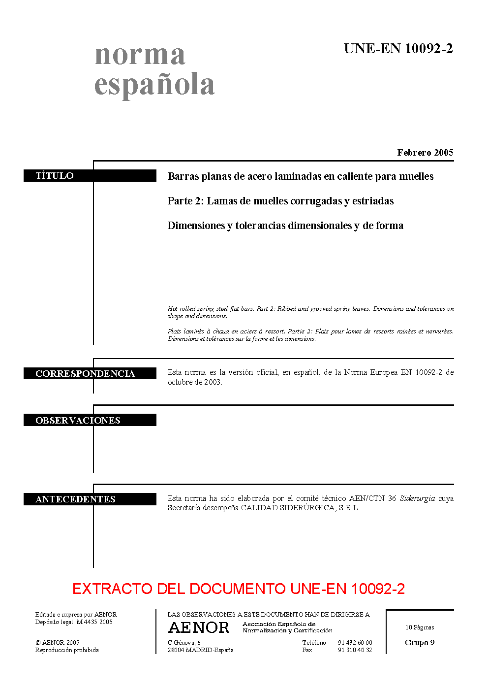 UNE-EN 10092-2:2005 (R2018)