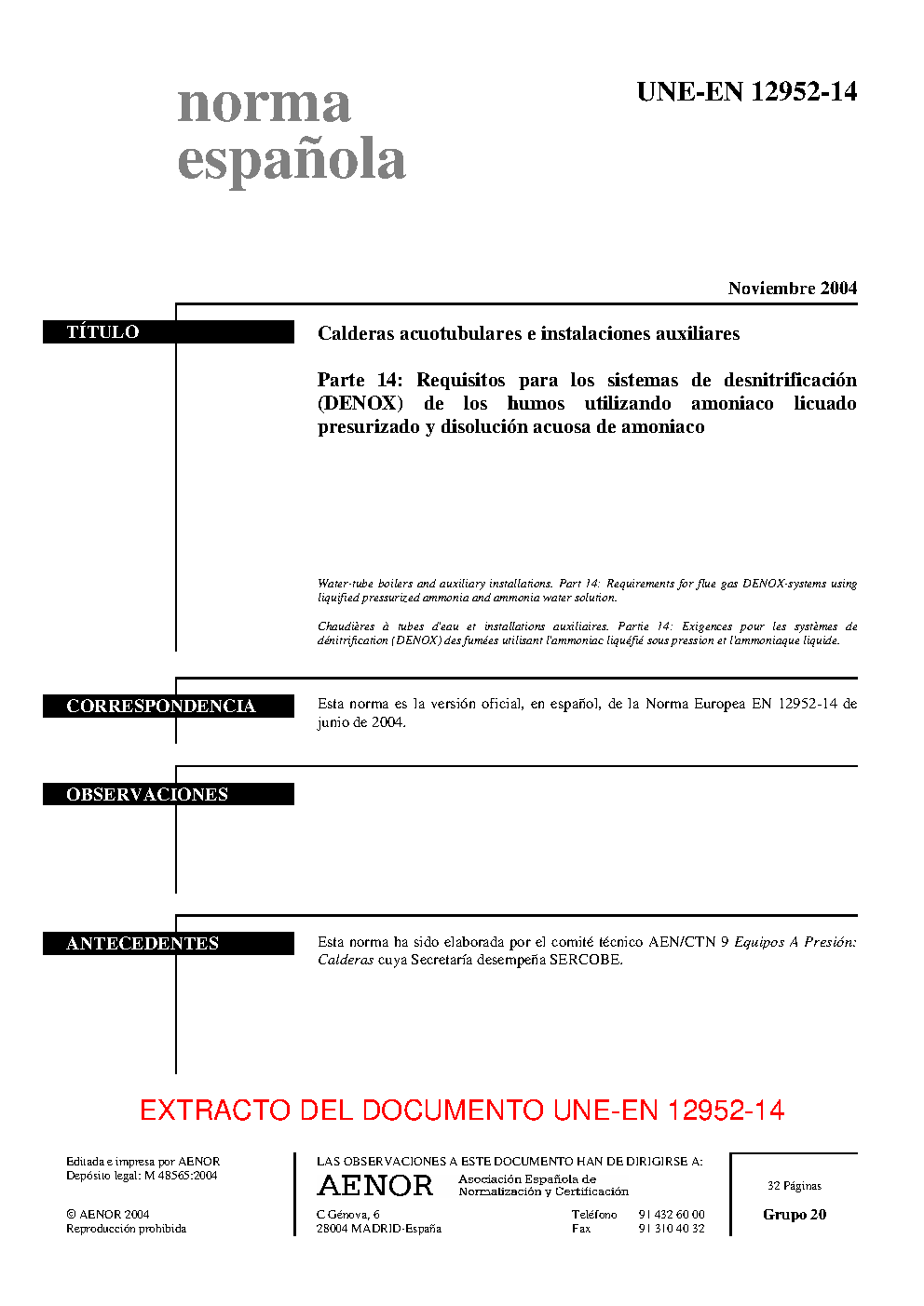| Publisher | Asociacion Espanola de Normalizacion y Certificacion (AENOR) |