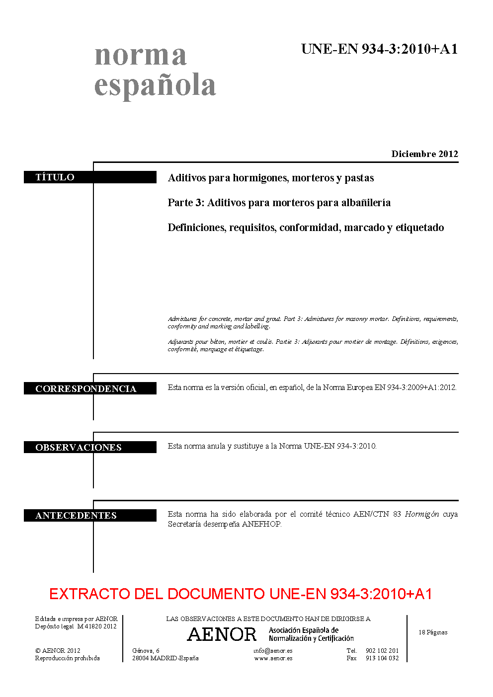 | Publisher | Asociacion Espanola de Normalizacion y Certificacion (AENOR) |