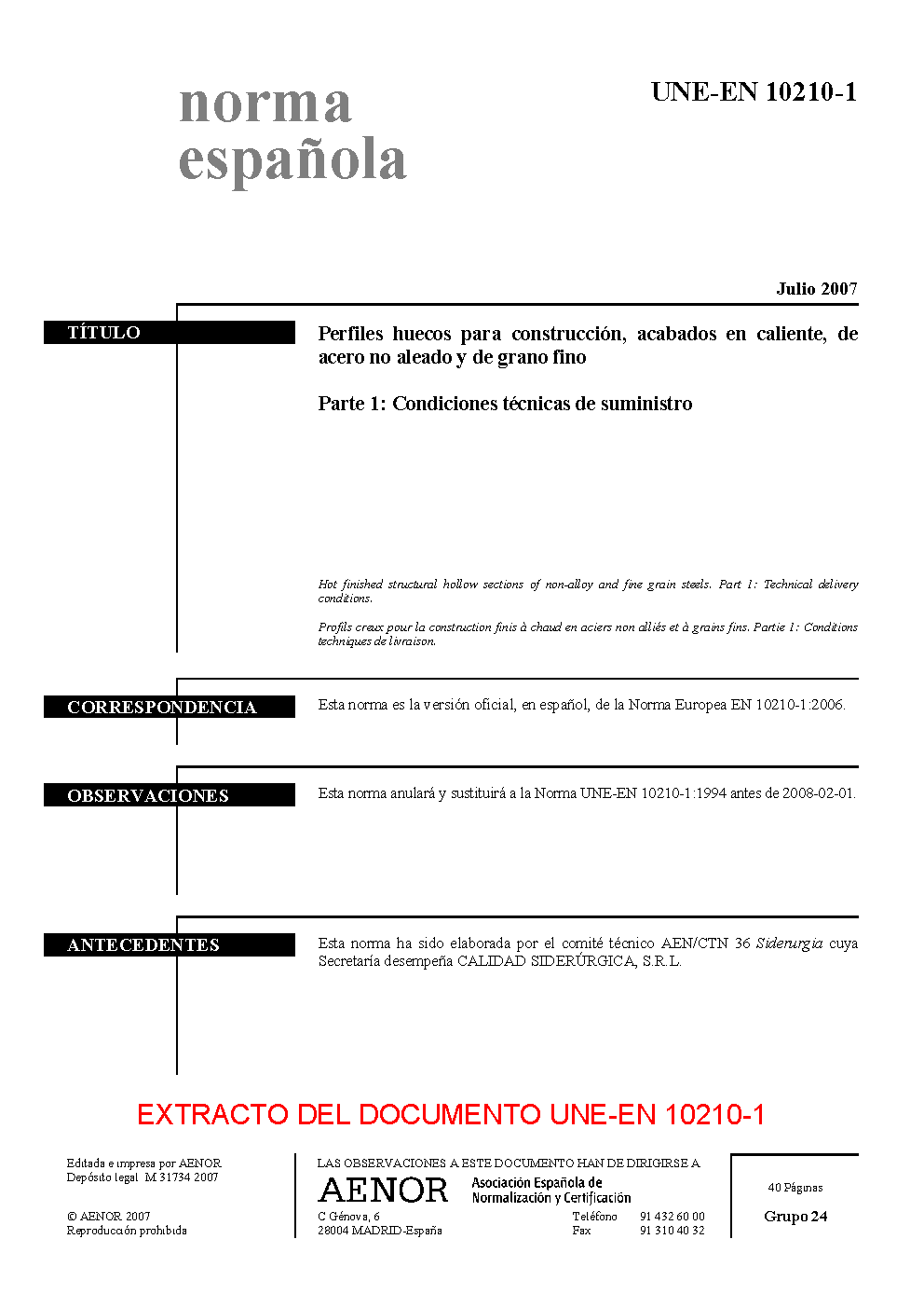 UNE-EN 10210-1:2007
