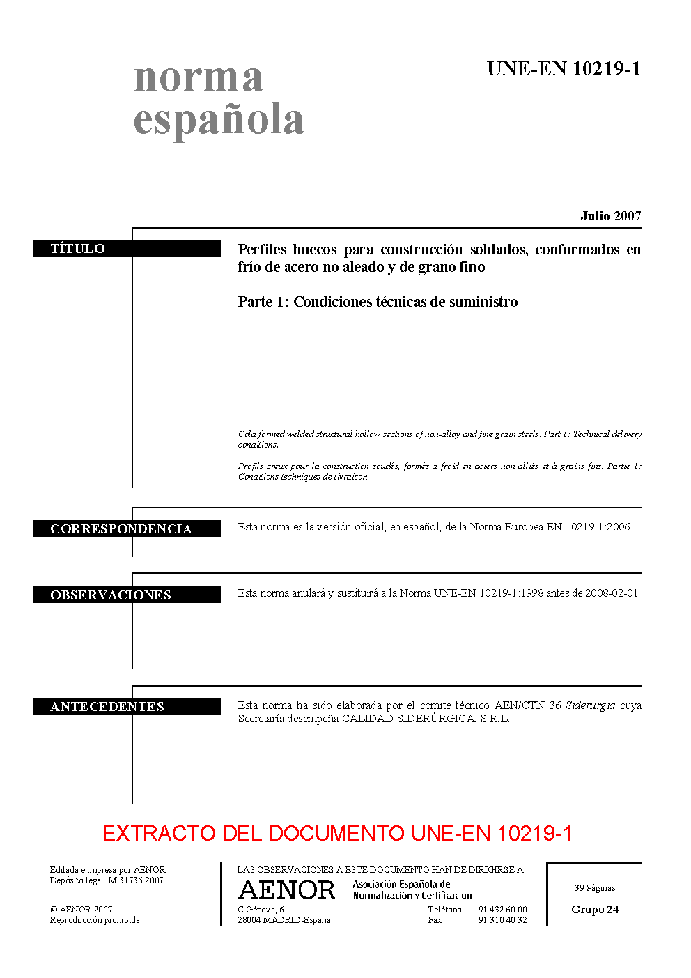 UNE-EN 10219-1:2007 ERRATUM:2010
