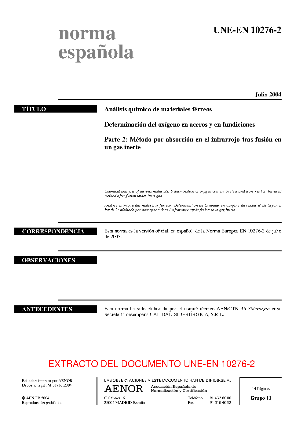 | Publisher | Asociacion Espanola de Normalizacion y Certificacion (AENOR) |