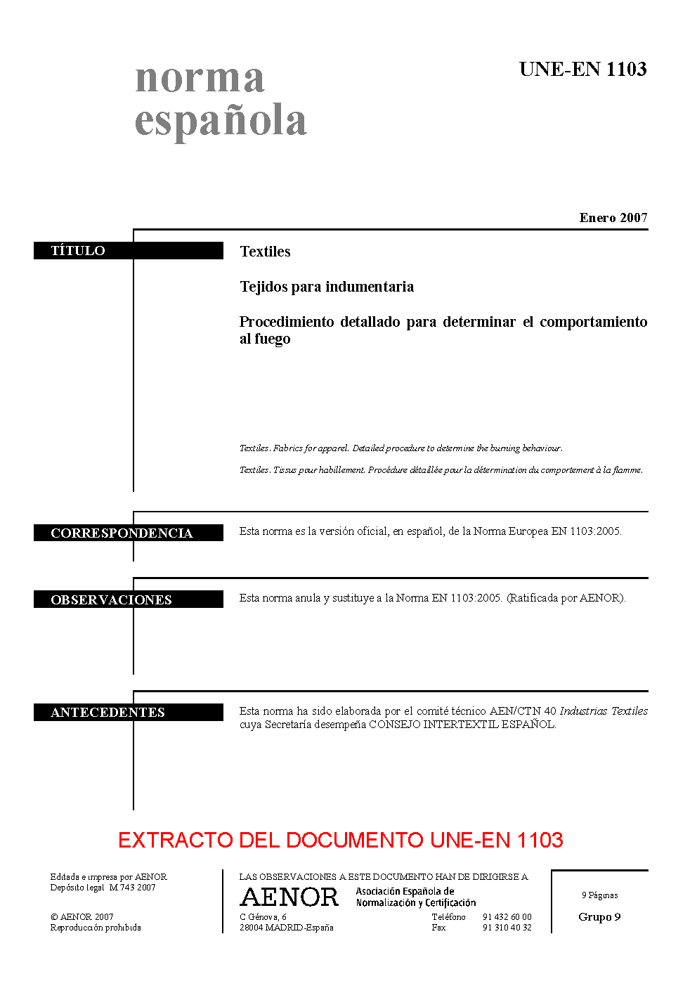 | Publisher | Asociacion Espanola de Normalizacion y Certificacion (AENOR) |