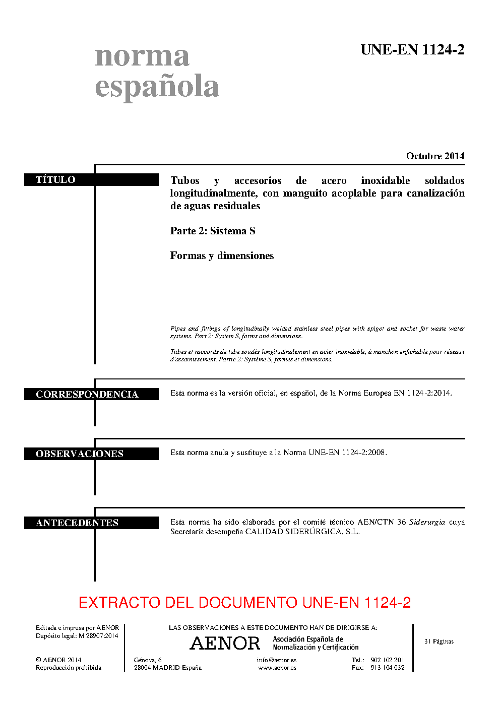 | Publisher | Asociacion Espanola de Normalizacion y Certificacion (AENOR) |