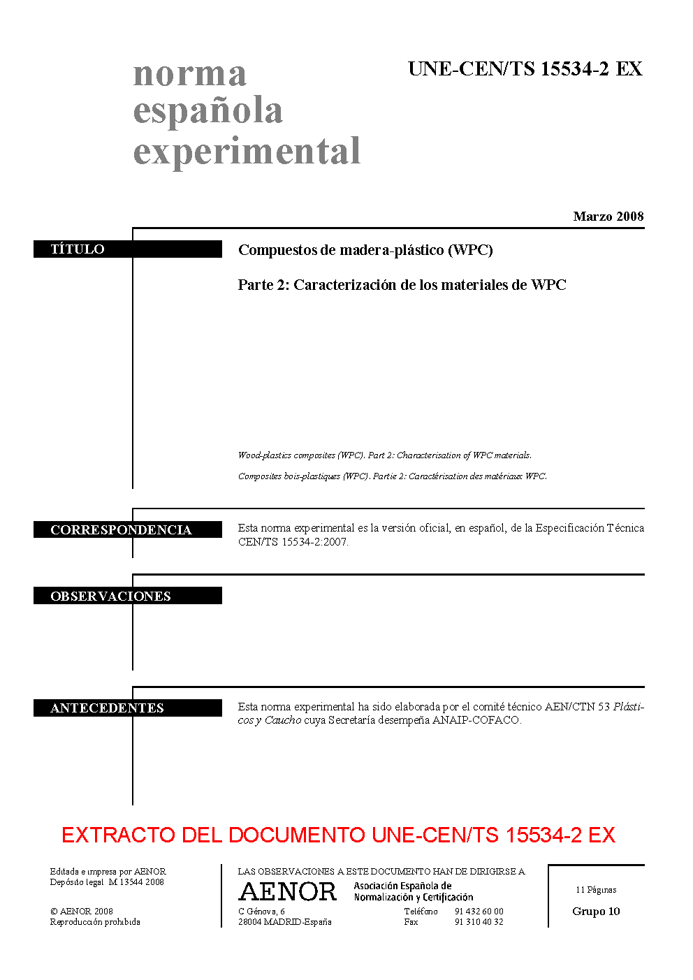 | Publisher | Asociacion Espanola de Normalizacion y Certificacion (AENOR) |
