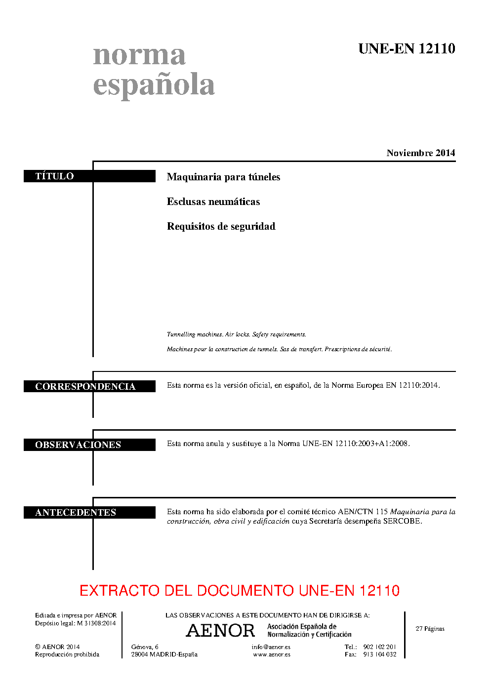 | Publisher | Asociacion Espanola de Normalizacion y Certificacion (AENOR) |