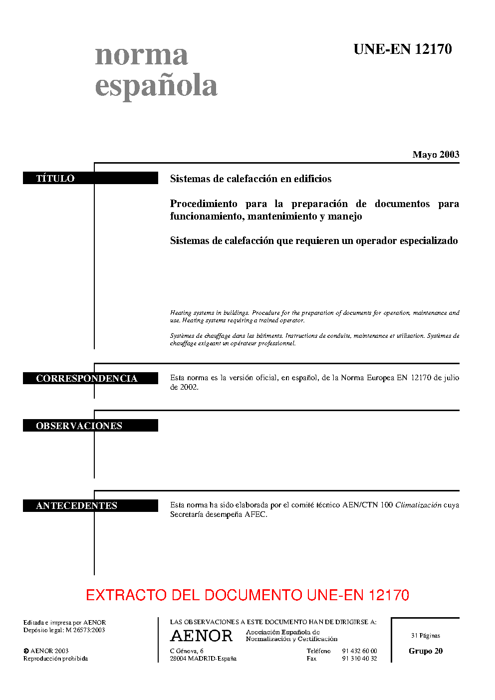 | Publisher | Asociacion Espanola de Normalizacion y Certificacion (AENOR) |