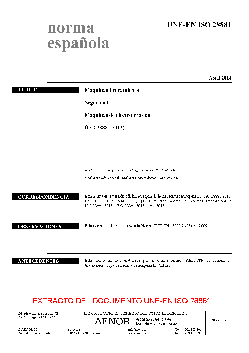 | Publisher | Asociacion Espanola de Normalizacion y Certificacion (AENOR) |