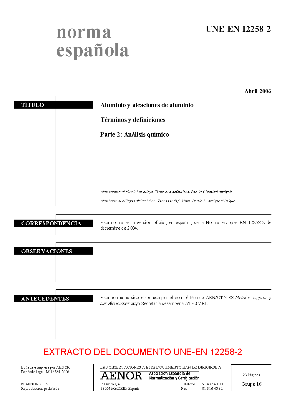 | Publisher | Asociacion Espanola de Normalizacion y Certificacion (AENOR) |