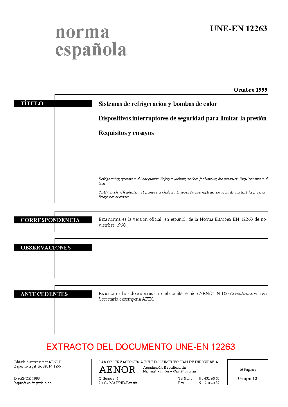 | Publisher | Asociacion Espanola de Normalizacion y Certificacion (AENOR) |