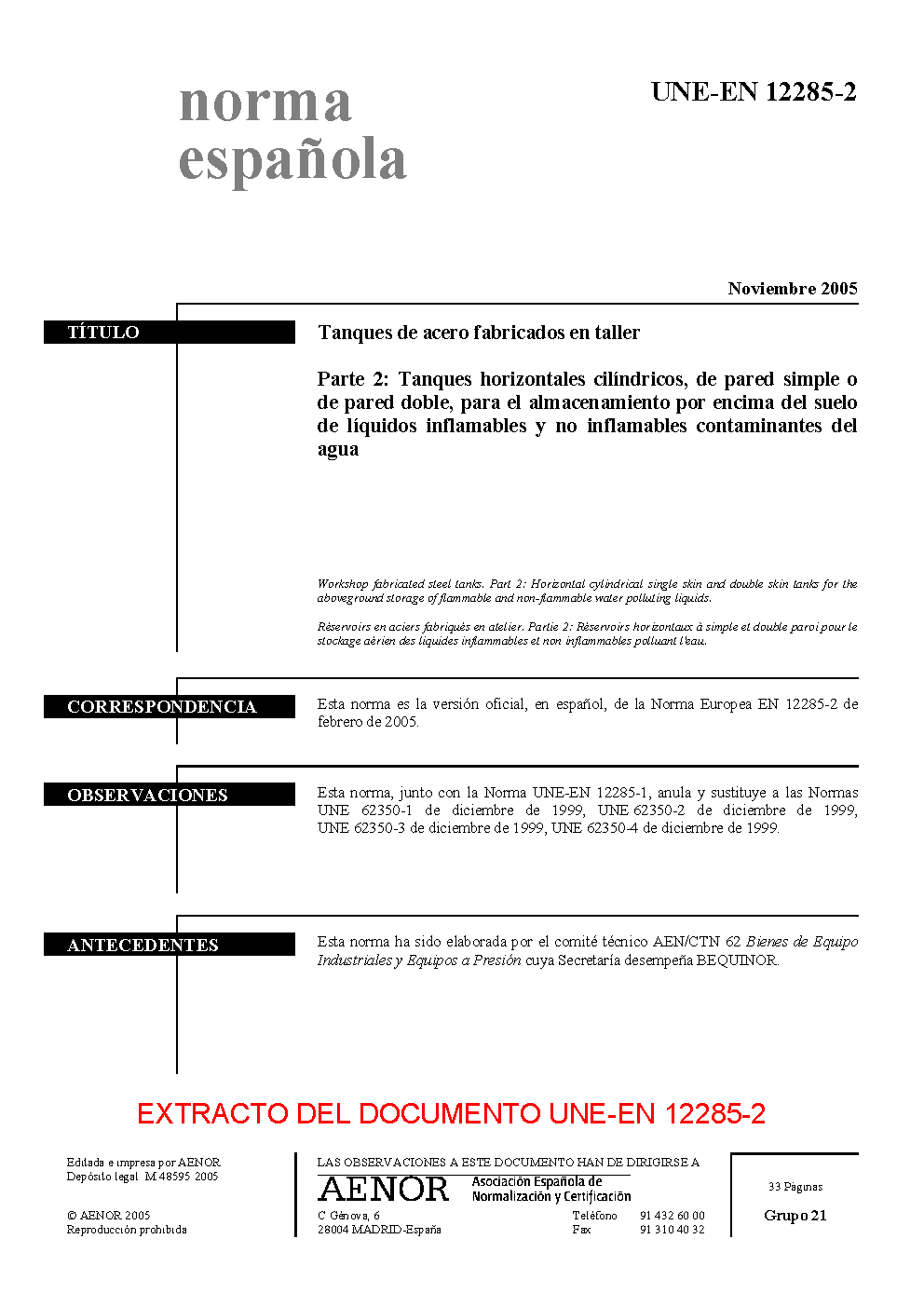 | Publisher | Asociacion Espanola de Normalizacion y Certificacion (AENOR) |