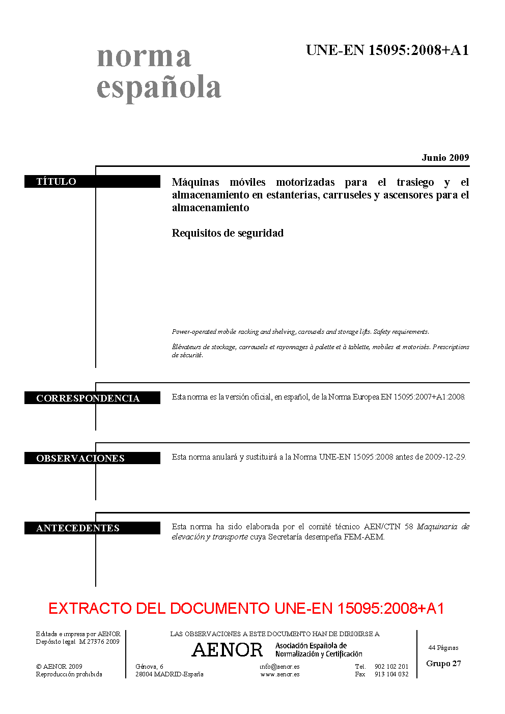 | Publisher | Asociacion Espanola de Normalizacion y Certificacion (AENOR) |