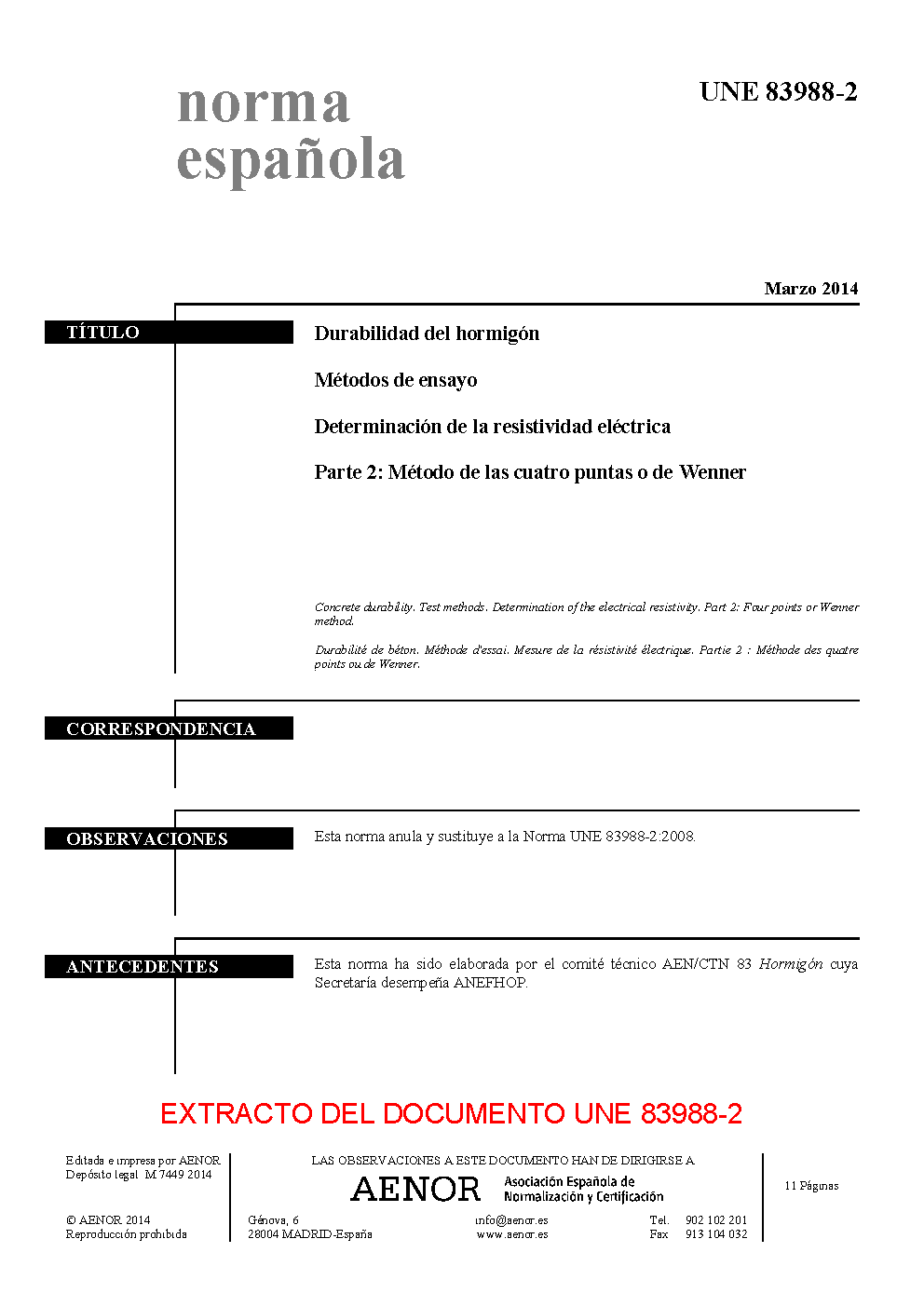 | Publisher | Asociacion Espanola de Normalizacion y Certificacion (AENOR) |
