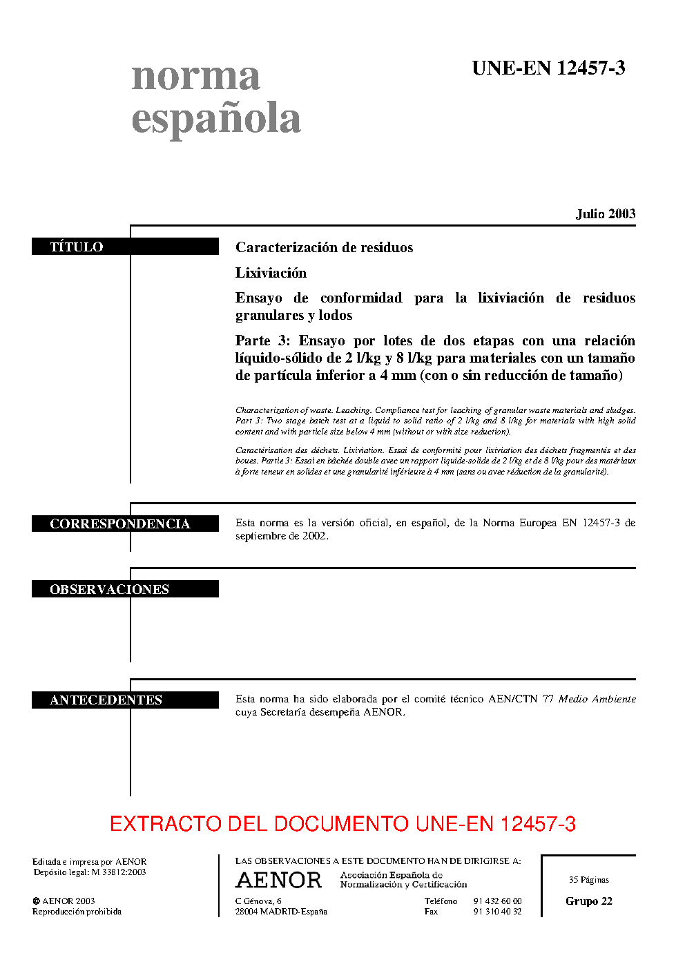 | Publisher | Asociacion Espanola de Normalizacion y Certificacion (AENOR) |